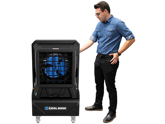 The portable COOLBREEZE™ CB-14SL by Cool Boss reduces surrounding air temperatures by as much as 26 degrees helping transform hot, stuffy spaces into cool, breezy retreats. Powered by a 1/3 HP motor, the 14” diameter Blue Flex™ fan pulls more air at idle and reduces engine drag at higher rpm’s for better performance, energy efficiency and economy.