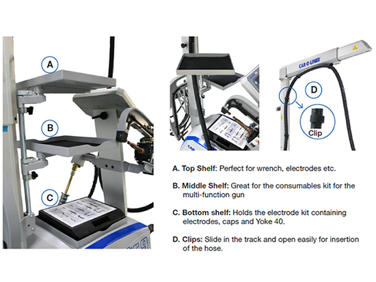 This accessories kit for the CTR© 7 and CTR© 9 welders has been introduced to make welding jobs in the body shop more convenient. Car-O-Liner wants to make sure technicians complete welding jobs more quickly, efficiently, and safely. That's why we have created these new accessories that help speed up the repair process.
