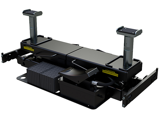 For drive-on scissor lift for general service, rolling jack for doing wheels-free service, tires and brakes.